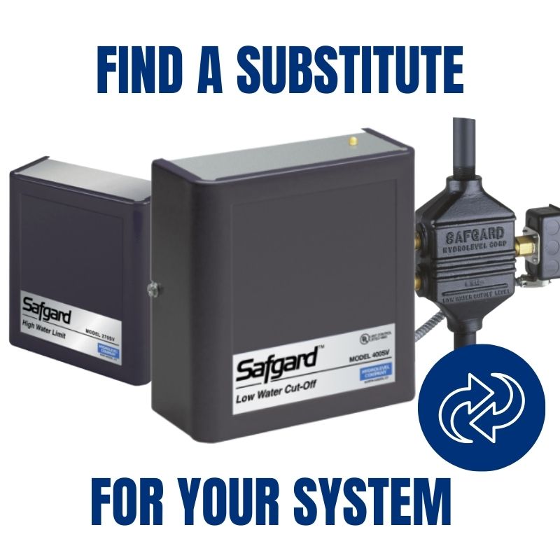Safgard low water cut-off cross-overs for seamless replacement with compatible boiler controls and probe systems.