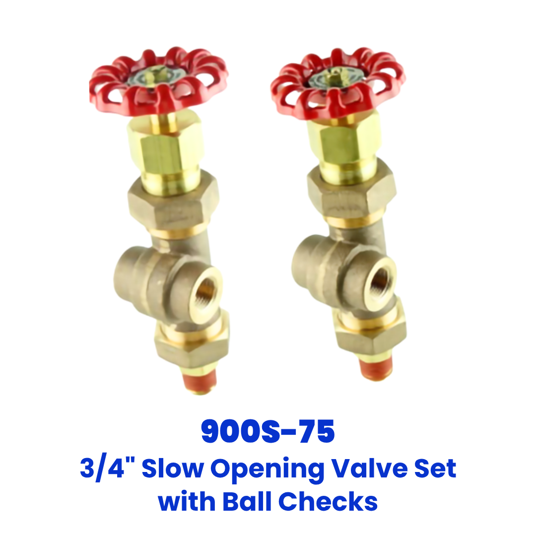| 900S-75 | 3/4" | 3/4" Slow Opening Valve Set with Ball Checks | $876.44 | Add to Cart |