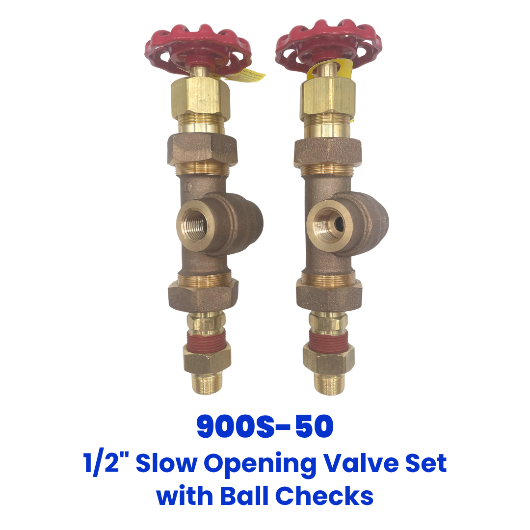 | 900S-50 | 1/2" | 1/2" Slow Opening Valve Set with Ball Checks | $876.44 | Add to Cart | |