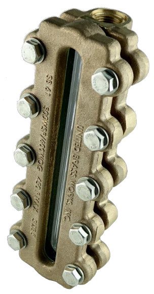 Model 897 Bronze Size 5 Site Glass 1/2" NPT w/ 1/2" Upper & Lower Slow-Opening Valve Set |