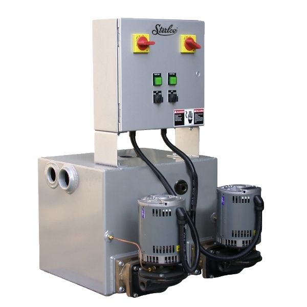 Heavy-duty condensate pumps built for reliability and efficiency. Each unit features a 3/16" steel receiver, bronze-fitted centrifugal pump, energy-efficient 3450 RPM motor, brass impeller, and “Sterl-Seal” ceramic pump seal rated up to 250°F. Automatic venting ensures long life and efficient operation. Available in simplex or duplex construction with a wide range of capacities, pressures, and custom options.