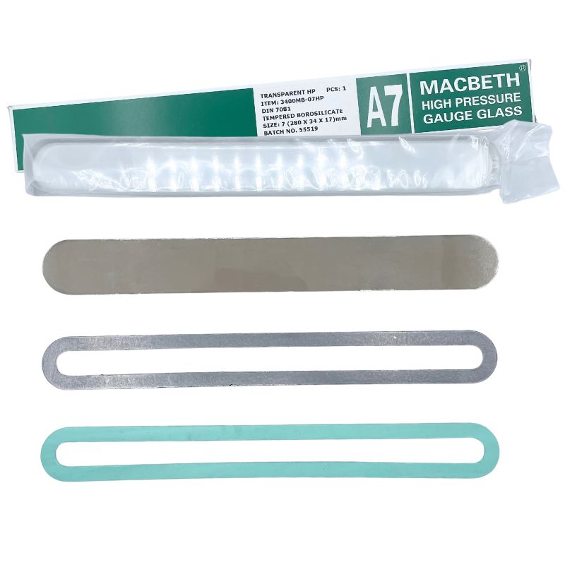 Macbeth Transparent Reflex Flat Glass Replacement Kits provide all the necessary components to replace and maintain the integrity of your liquid level gauges. Combining the benefits of transparent and reflex glass, these kits ensure accurate and reliable readings in high-pressure and high-temperature environments. Each kit includes high-quality glass and gaskets, designed for durability and ease of installation.